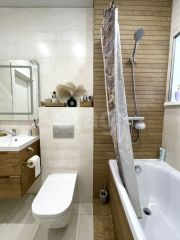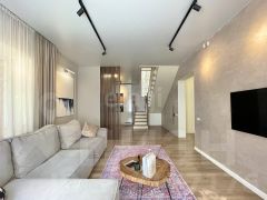 Отделка: стены оштукатурены в стиле венецианская штукатурка, ламинат, натяжные потолки, пластиковые окна. В санузлах отделка керамогранит и теплые полы.