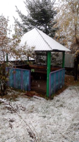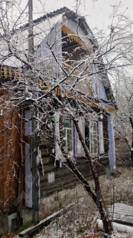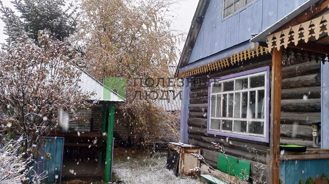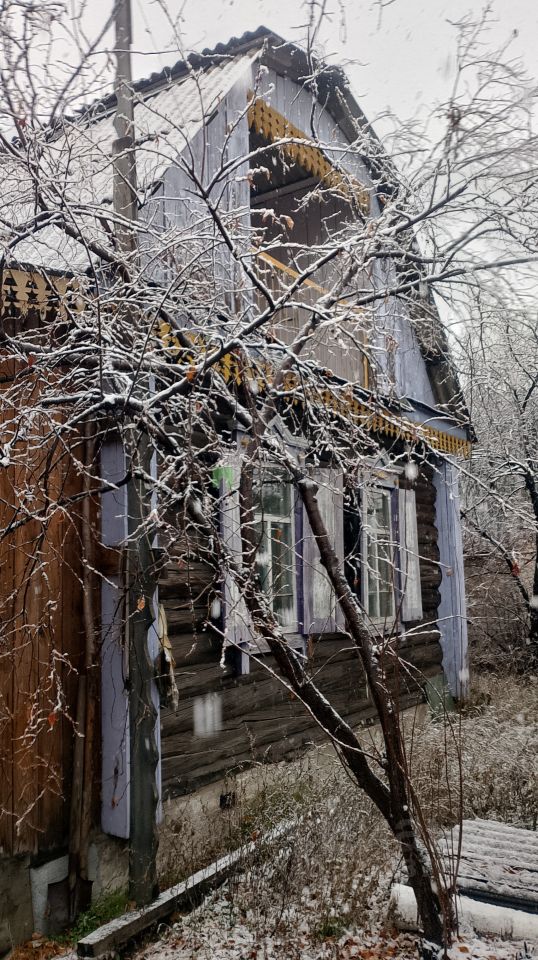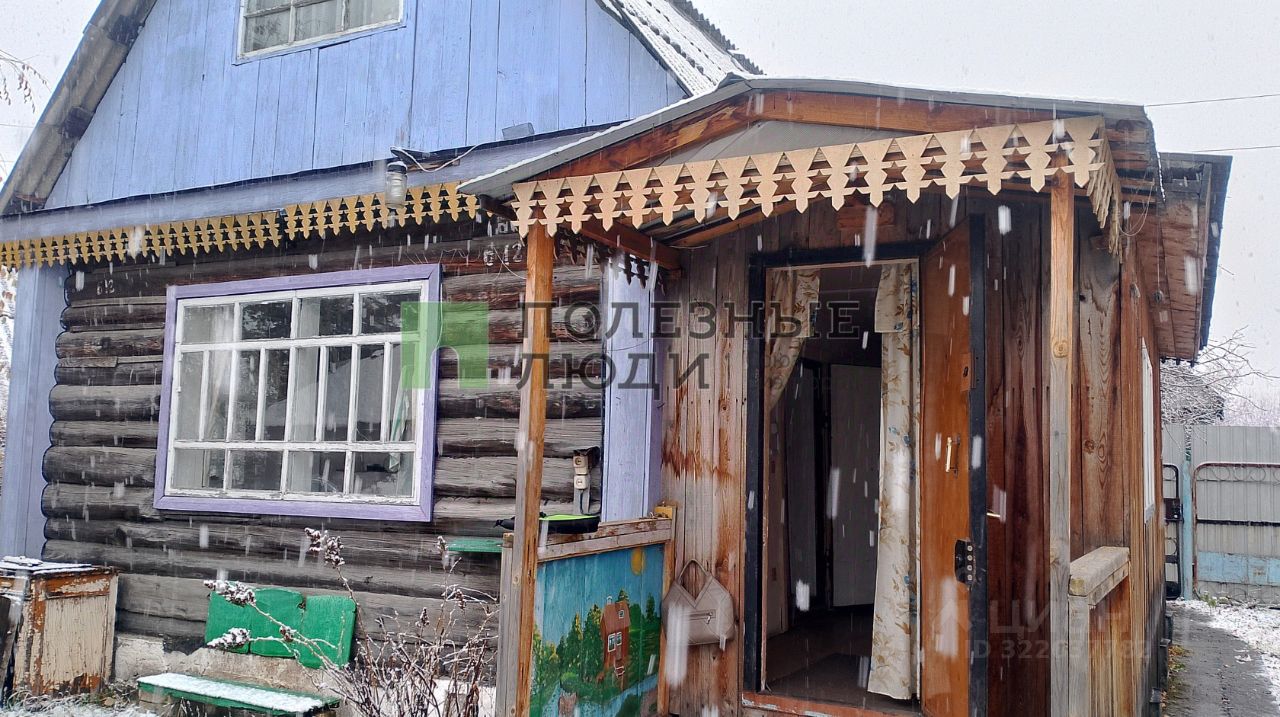 Продаётся дом в СНТ, построенный из бревна. Общая площадь дома — 40 м², размер — 5 на 6 метров, два этажа (второй этаж — мансарда). На участке площадью 5,44 сотки также расположены беседка, баня, теплица, ёмкость для воды, сарай, есть скважина для водоснабжения. Насаждения: малина, смородина, слива, вишня, крыжовник.