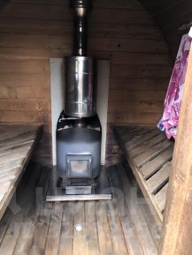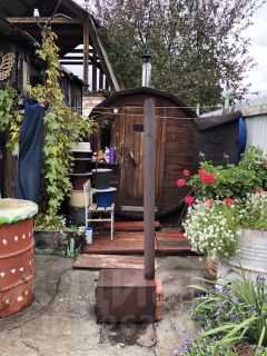 Бревенчатый дом с мансардой из натуральных эко-материалов, дровяная печь, просторная застеклённая веранда, баня-бочка, сарай и теплица.