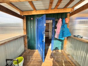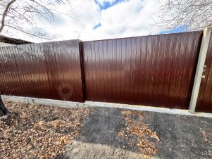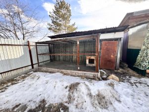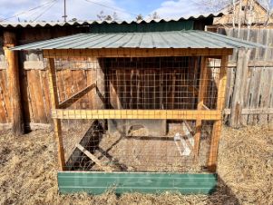 Слева у входа располагается вольер для собаки крупной породы. Забор из профлиста на ленточном фундаменте (не в землю вкопаны столбы, не заливные столбики). Гараж под авто в наличии. Есть крольчатник/курятник. Проезд к даче отличный, недалеко от основной дороги.