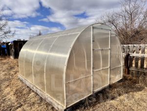 Есть грядки, теплица из поликарбоната 3м х 4м. В конце участка установлен туалет. Много хозяйственного инвентаря. Отличный кованный мангал в подарок.