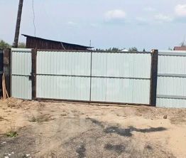 Ограждение - профлист на деревянных столбах.