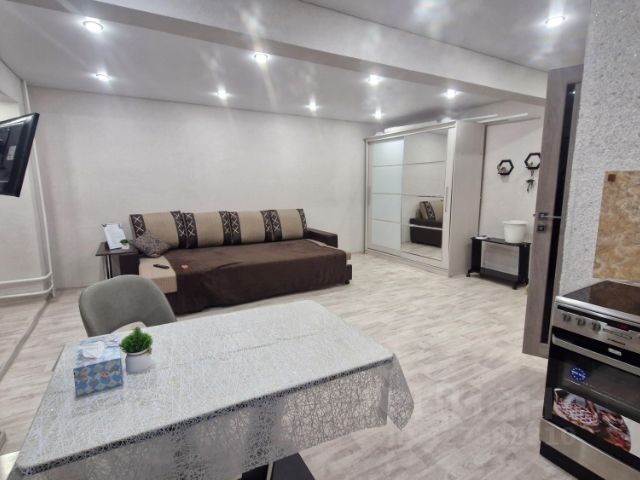 В квартире имеется все для комфортного проживания. Двуспальная кровать, тв, wifl, стиральная машина, эл. печь, СВЧ, холодильник, чайник, кухонный гарнитур, обеденный стол, столовые приборы, постельное бельё, полотенце, тапочки. Возможно заселение с детьми. Количество комнат 1. Курение в квартире запрещено, курить только на балконе.